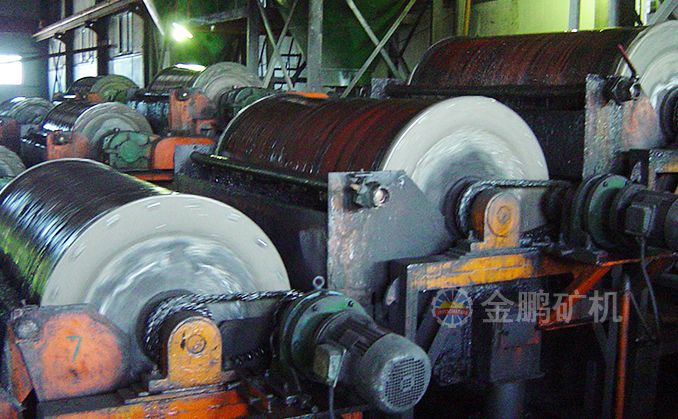 磨礦為兩個系列,采用一段閉路磨礦流程,選用MQG3240 格子型球磨機2臺。浮選采用一次粗選、二次精選、三次掃選流程,粗、掃選選用24立方浮選機,精選選用8立方浮選機。產出銅鉍和鋅精礦粉。浮選尾礦進行磁選,得到含鐵65%鐵精粉。