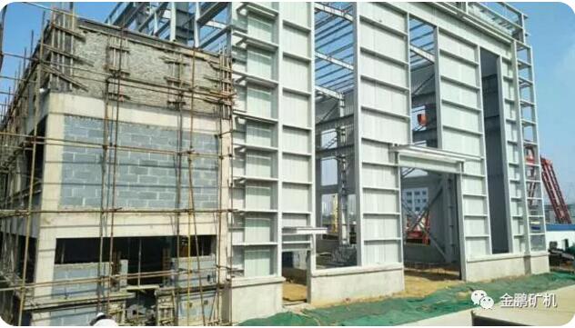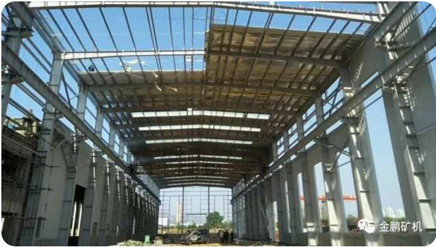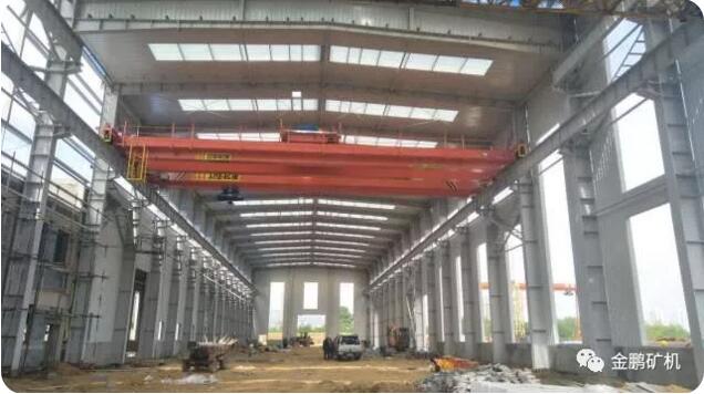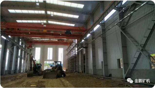 金鵬二期工程自2017年11月份開始開工建設,該項目建筑面積3515平方米,東西長度為110米,南北跨度為30米,主跨24米,建筑高度18.5米,主跨為鋼結構,副跨辦公部分為框架結構,共設5臺吊車,分別為5t的一臺,10t的兩臺,20t的一臺,32t的一臺,總投資約2000萬元。
